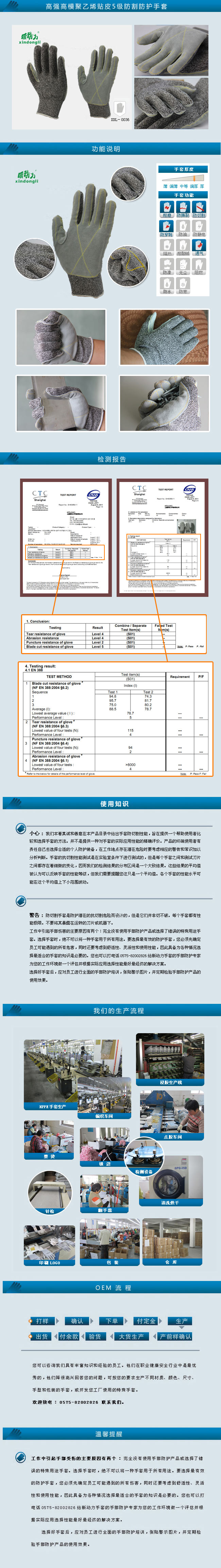品      名: 高强高模聚乙烯贴皮5级防割防护手套