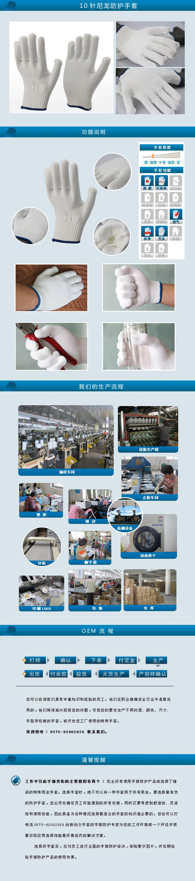 10针尼龙防护手套